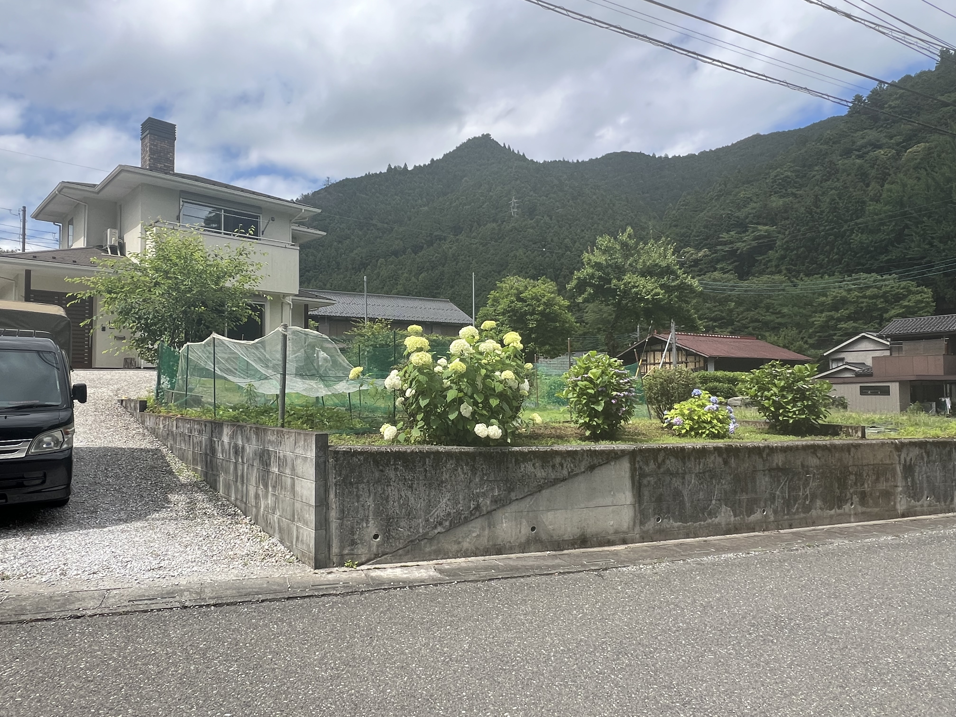 奥に広がる山の緑と、