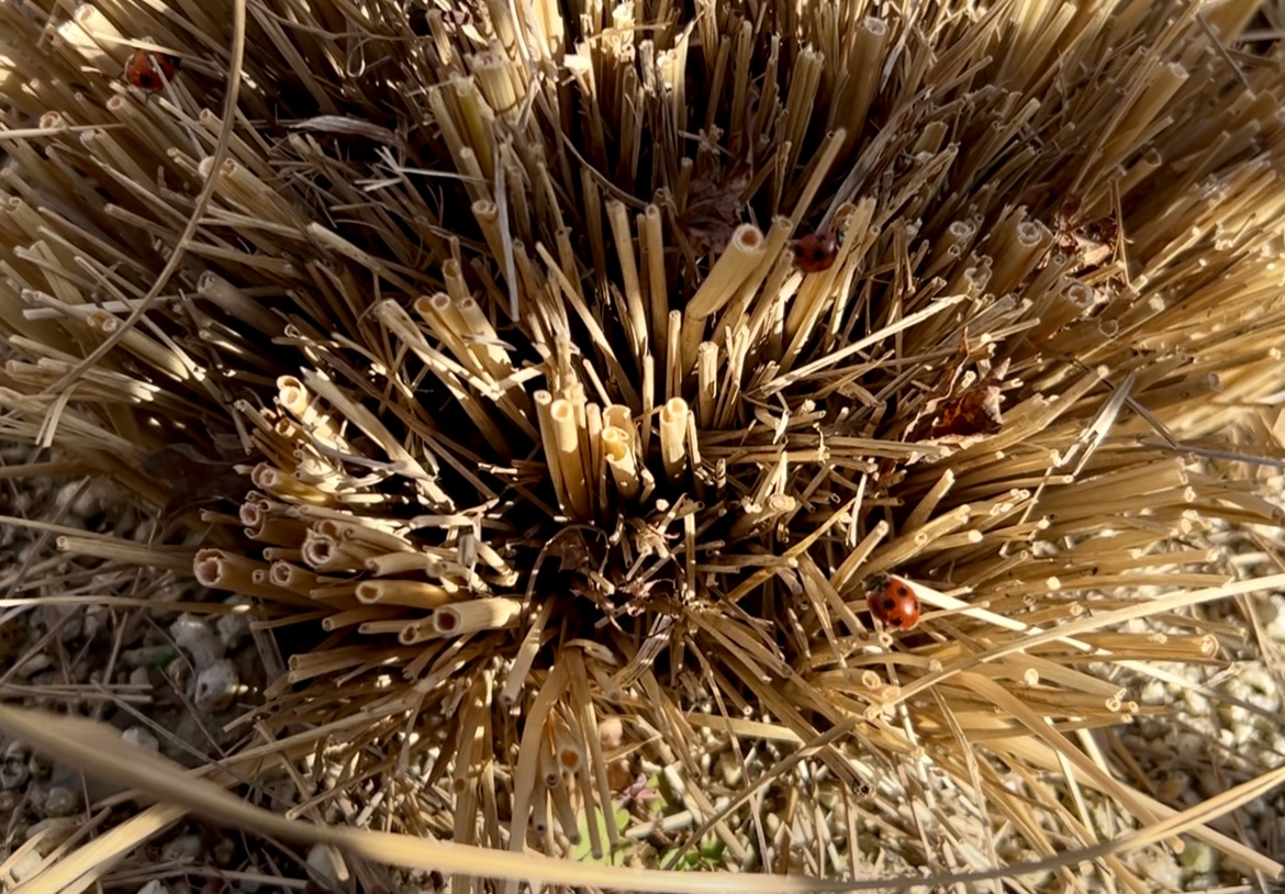 枯れ葉や茎の隙間を「天然のシェルター」にして寒さをしのぐ習性があります。