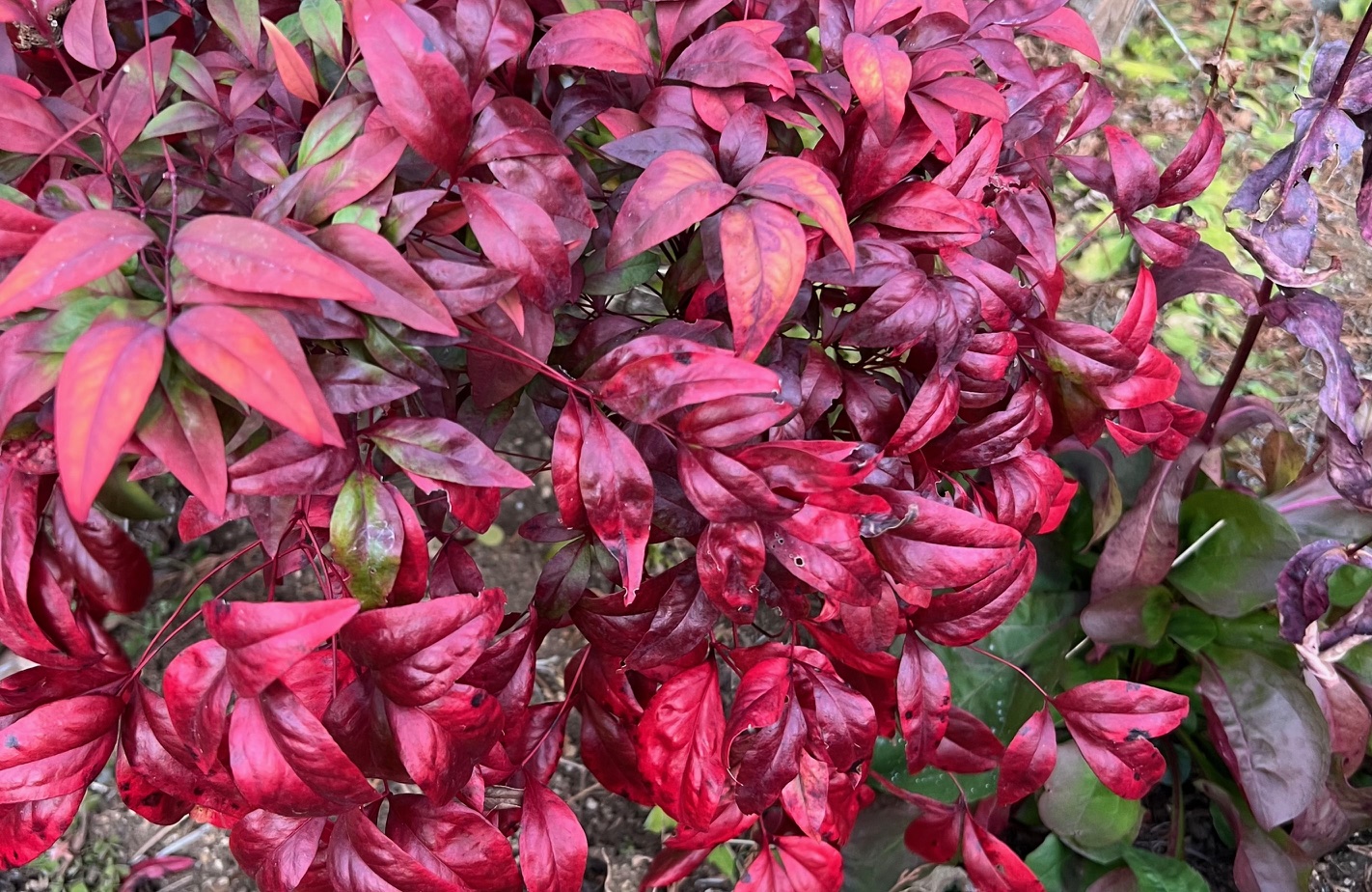 冬の庭でひときわ目を引く植物”オタフクナンテン”。